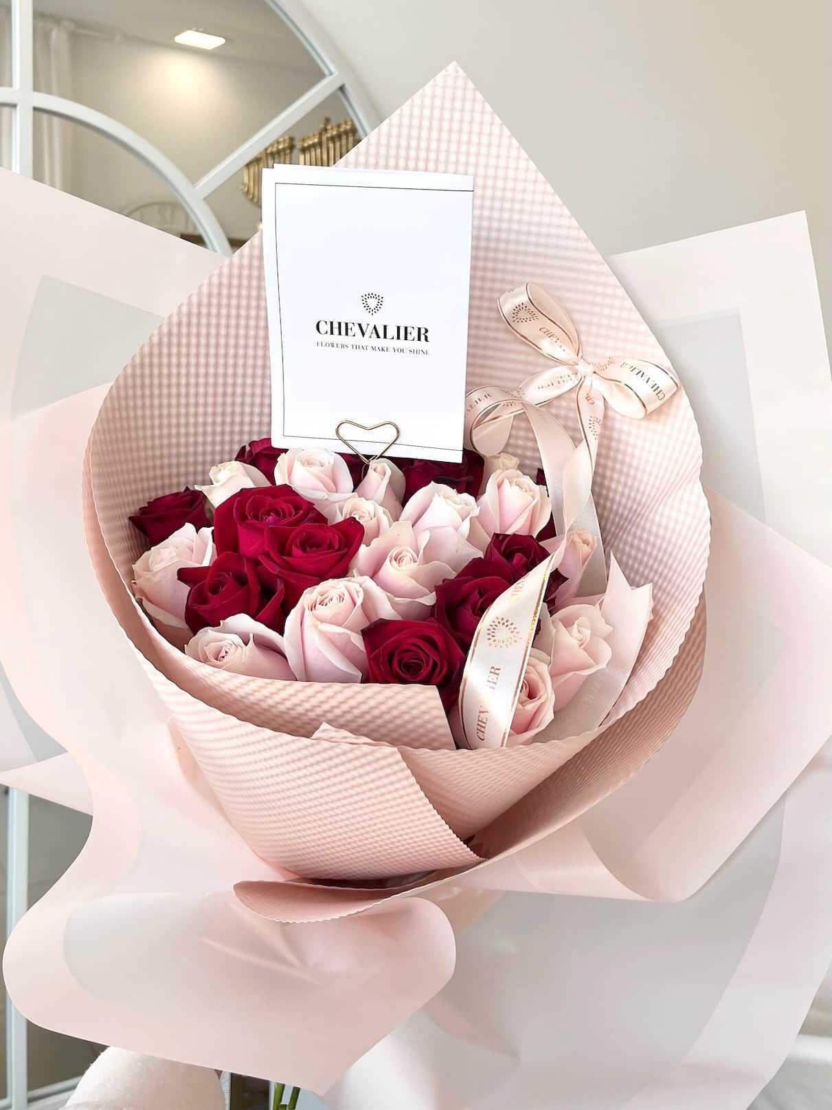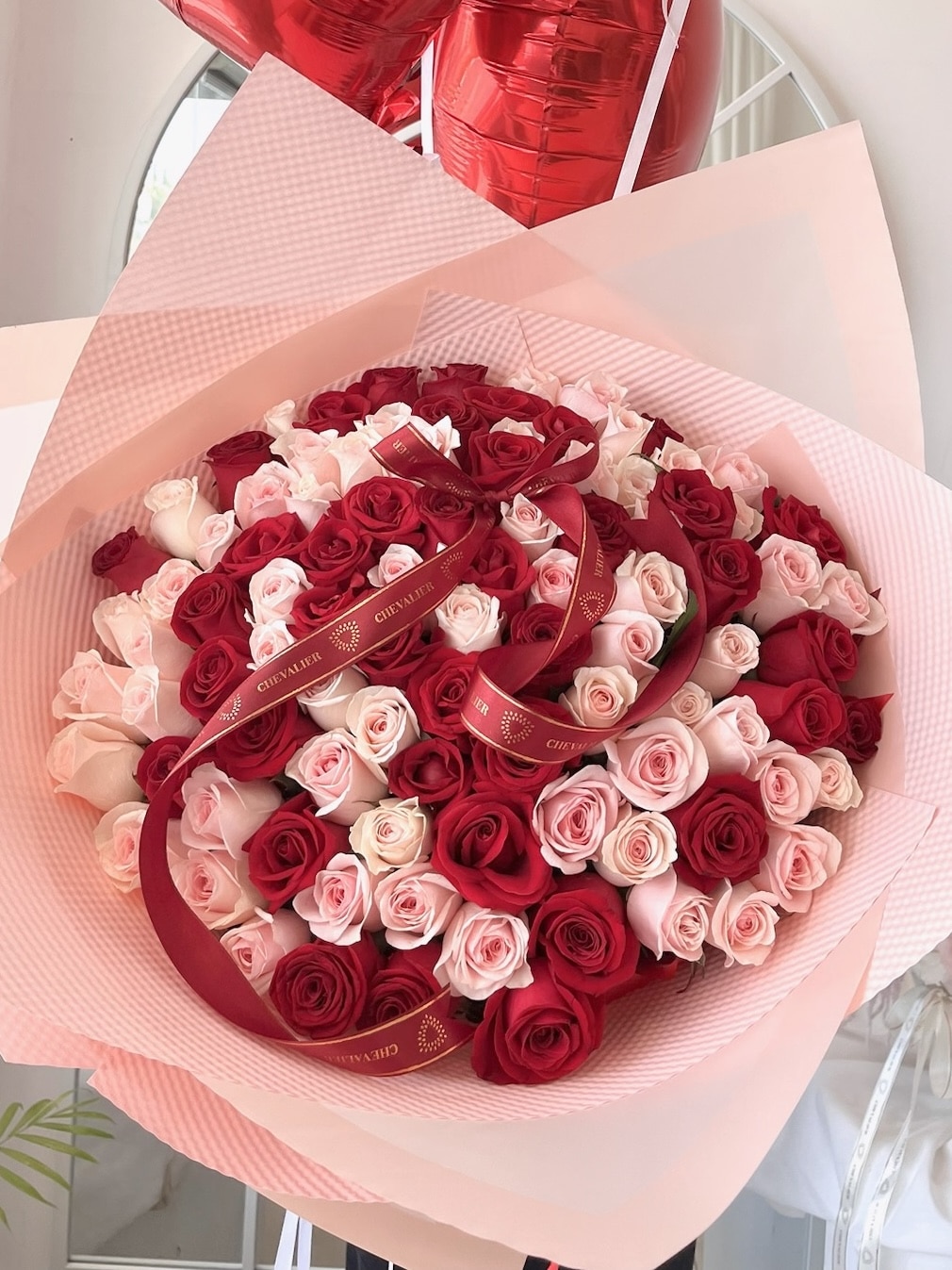 זר ורדים יוקרתי, מלא ורדים אדומים וורודים בשילוב עשיר ומרשים