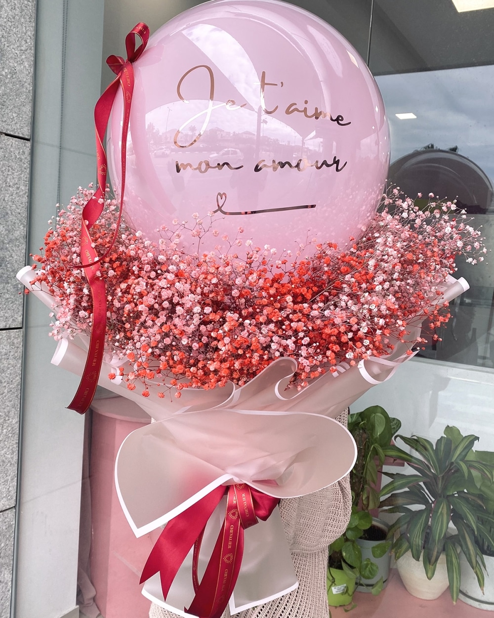 הטרנד שכבש את ישראל בסטייל של שווליה בעיצוב מיוחד לולנטיין. זר ענק של גיבסניות אדומות וורודות עם בלון והקדשה je t'aime mon amour עטופים בשפע של נייר מיוחד עמיד למים, שיגרמו להם להתרגש מהיופי והייחודיות!!!