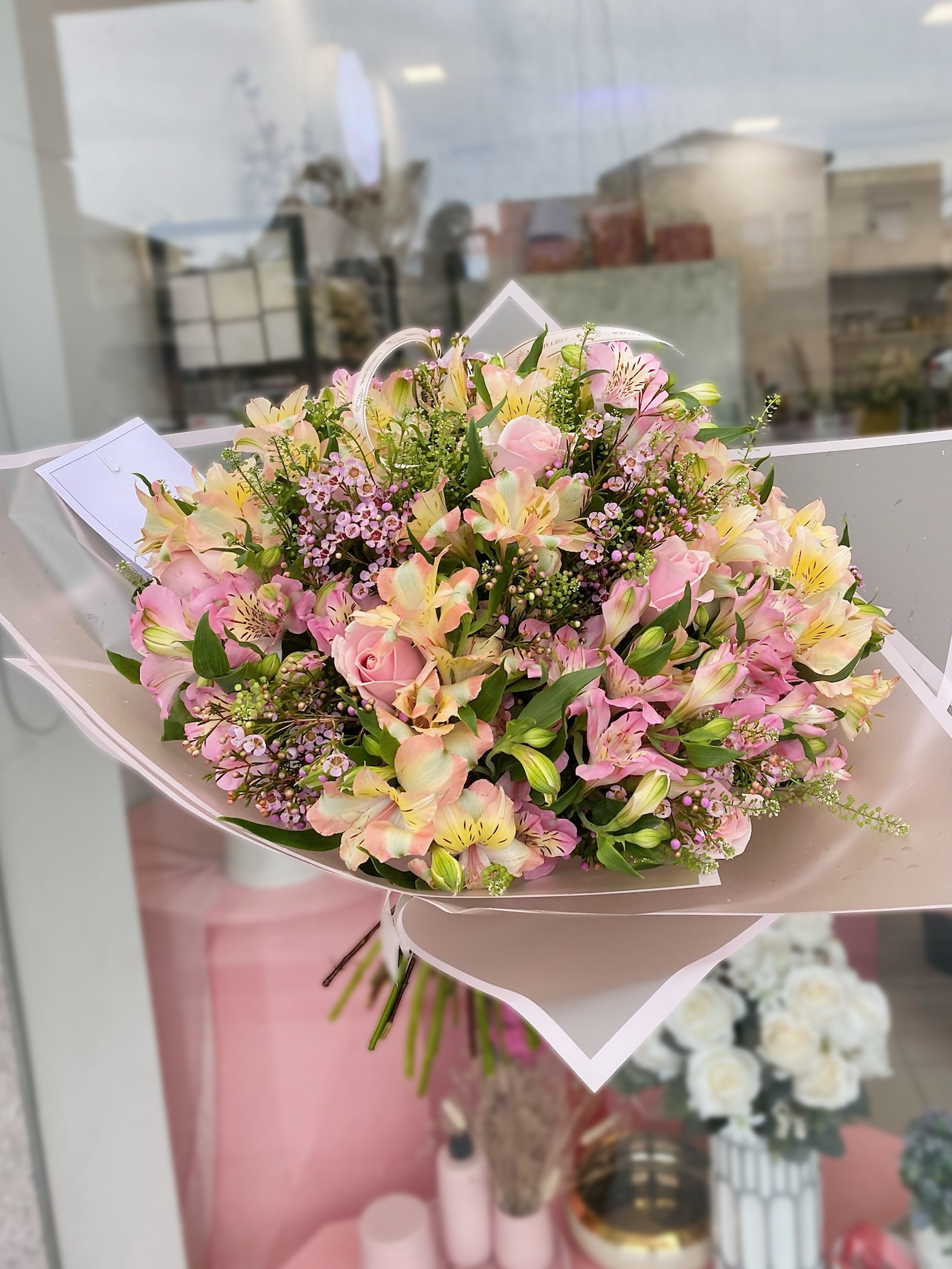 זר רומנטי, קסום, עמיד ובעל ריח מדהים…המכיל ורדים, שעווה/סינדרלה ואלסטרומריה.